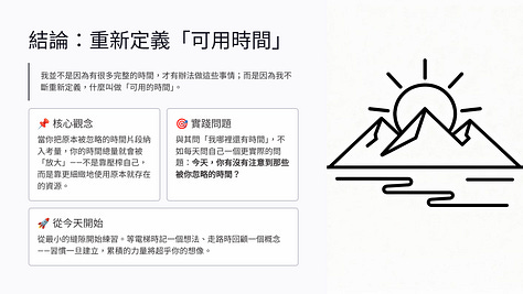 結論:時間管理的本質,是重新定義「可用時間」
